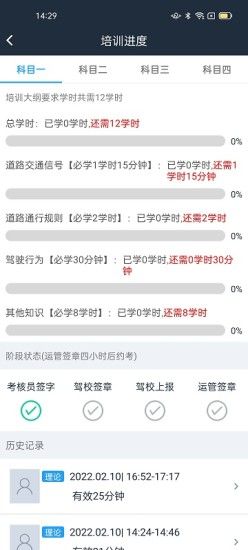 2.在首页点击学时记录,进入学时记录页面。