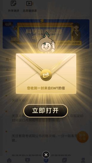 升学e网通app官方版是一款功能强大的在线学习网课软件,提供语数英、物理、化学等免费课程资源,还有新高一课程笔记、周优培等功能,用户可以根据需要在线选择或者下载网课进行学习。升学e网通app官方版还拥有高考志愿填报功能,通过测评系统和科学的填报方法,轻松把控自己的生涯规划。有需要就来下载吧!