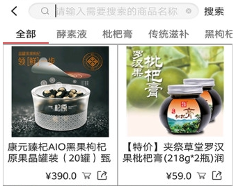 2、搜索商品、品牌名称,查看搜索结果。