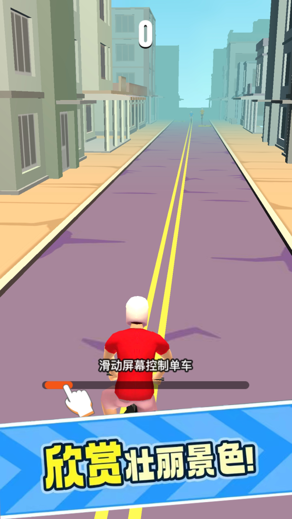 2、玩家可以通过触摸屏可以控制自行车的方向和速度,感受道路上自行车的颠簸和风速。
