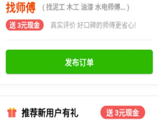 3.以装修相关的不同分类,如水电工、油漆工、泥瓦工等,帮助用户找到所需的服务师傅。