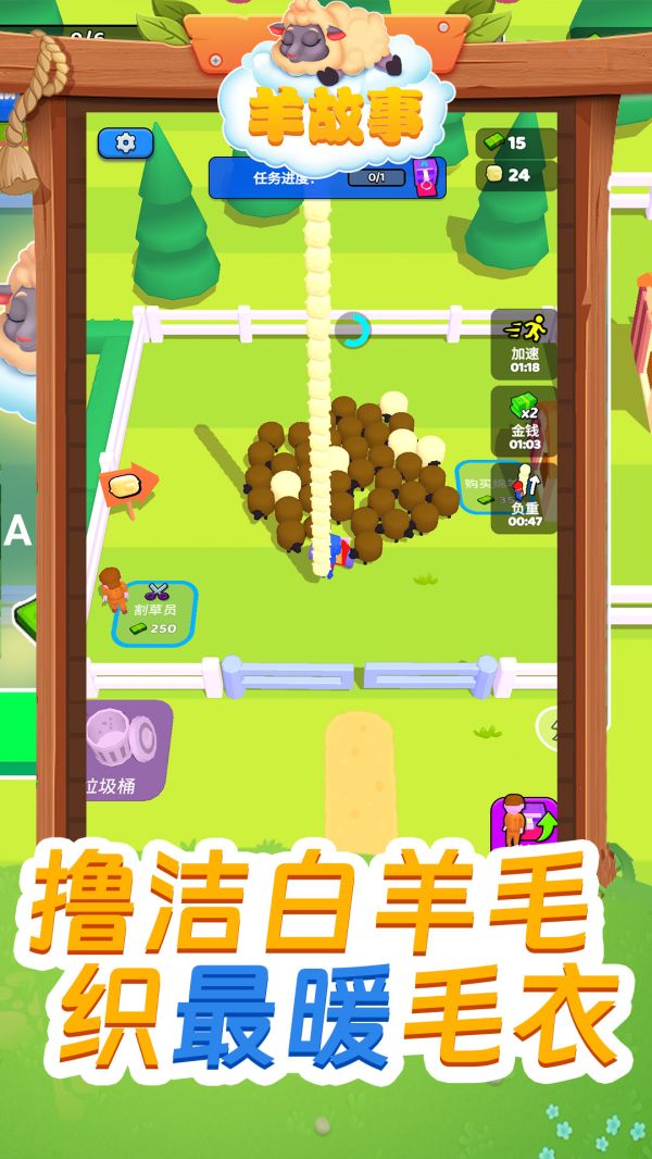 羊故事是一款简单有趣的农场经营手游,玩家可以自由设计和建设自己的农场,包括放置建筑物、农田、畜舍等,还能通过提升农场等级,解锁更多的功能和地块。羊故事手游中玩家能从种植作物到喂养羊群,并利用农场产出的资源进行交易,获取更多的金币钻石和奖励,感受田园生活的宁静与快乐。想玩就来下载吧!