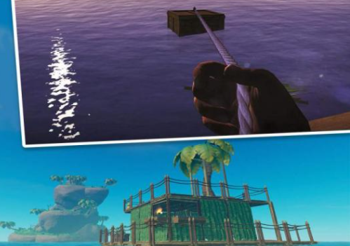 收集食物,木材和其他重要资源,建造木筏并升级,完成海上生存。
