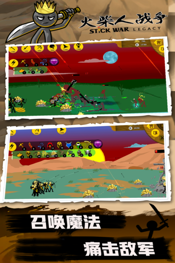 3、玩家需要尝试使用大量的金币来提升自己的火柴人军队,快来试试吧!