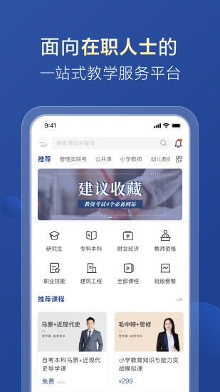 满足不同学员学习考证需求,为在职人士提供一站式在线教育服务。