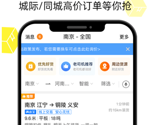 货车帮司机版最新版app是一款好用的拉货找货司机接单软件,可以通过下载的手机软件实时接收货物订单,司机能根据自身情况决定是否接单,提高运输效率。和货拉拉、运满满一样,货车帮司机版最新版app提供多种线路规划算法,帮助司机选择最佳的行驶路线,还方便货主随时了解货物的运输进程和车辆的行驶状态。有需要就来下载吧!