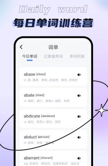 内涵海量词库,配备单词全解,情景例句辅助学习。