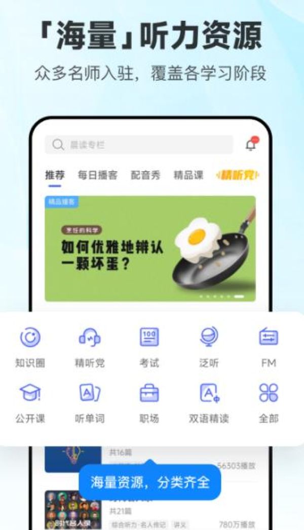 全新百科智能提示,让你训练听力的同时不知不觉增加英语词汇量。