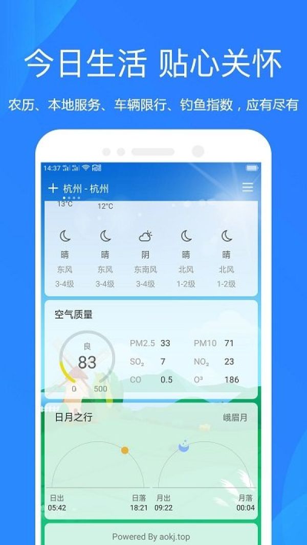 2.天气预报:提供未来几天的天气预报,包括温度变化、风力风向、天气状况等信息,让用户可以提前做好天气的准备。