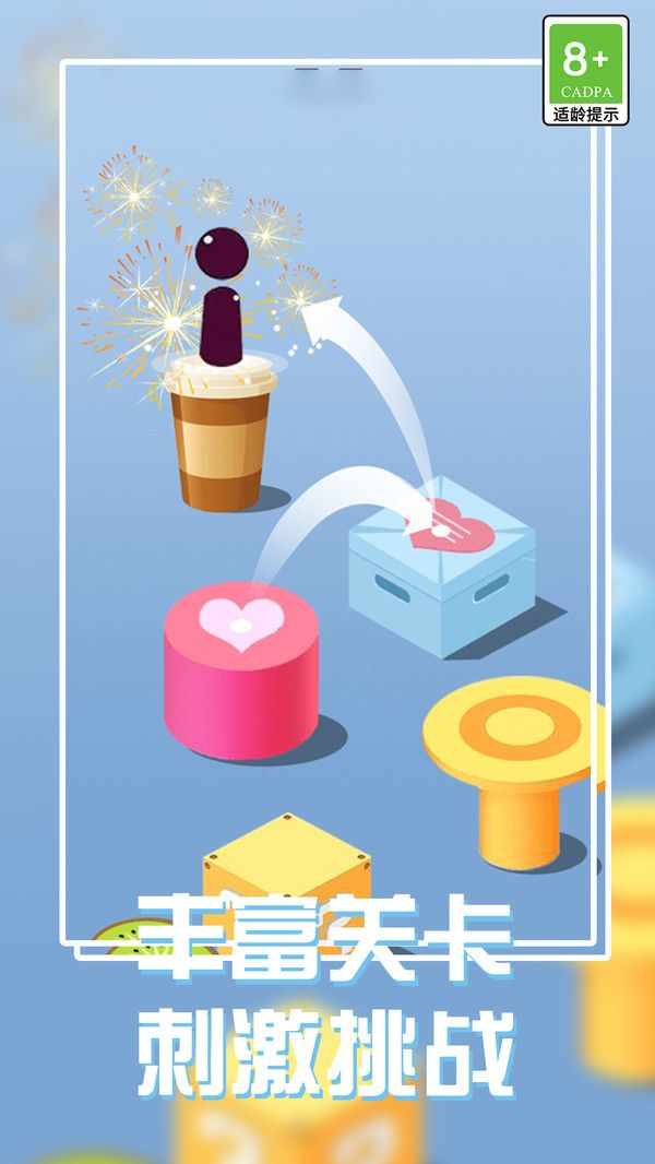 1.这款游戏的画面非常清新亮丽,跳跃的造型也非常可爱,让人玩起来很有趣。