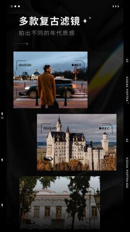 3.轻轻一按即可呈现出最真实的复古胶片摄影,拥有独一无二的相机滤镜效果。