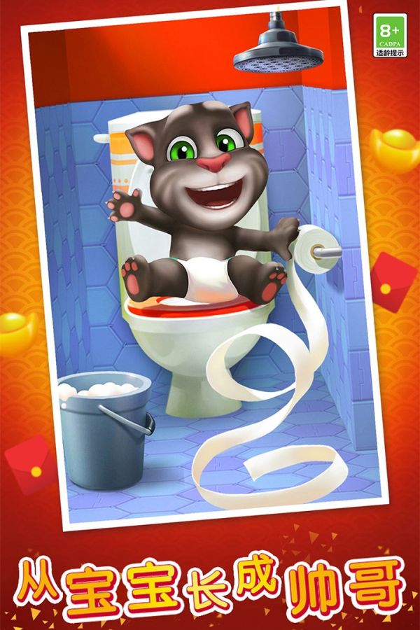 6.玩游戏,获得奖励:随着游戏的进行,帮助汤姆平稳过渡到9个阶段,达到999级成长,解锁新的道具并获取金币!