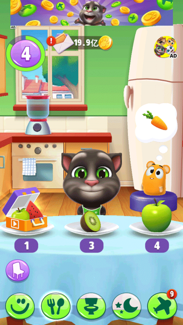 5、培养你的专属汤姆:与他一起免费玩游戏,喂他喜爱的食物,带他上床睡觉。