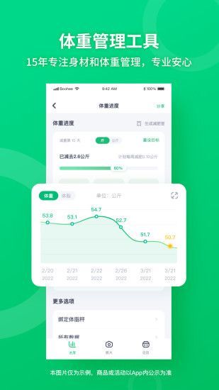 2、有效:定制个性化健康模型,跟踪体重、体脂、围度等多维数据,不断优化减肥等身体管理方案,健康有效地达到减肥效果。
