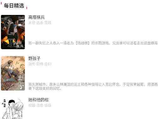 1.日刊功能会向用户展示优质的漫画点评,剖析漫画细节,还能分享漫画阅读体验。