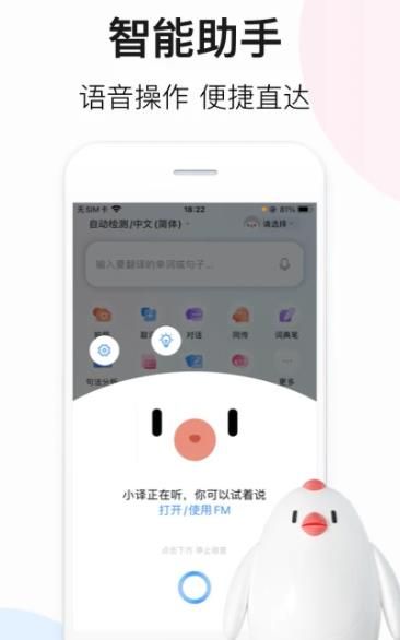 1.实时语音翻译,支持中、英等21种热门语言的语音输入,更有英文口语打分纠音,助力口语提升。