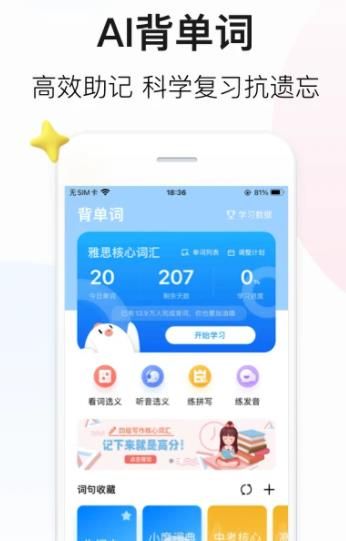 1.专业多维度打分和纠错,同时支持音标学习,助力提升口语发音。