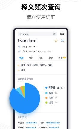 3.单词释义太多不知道用哪个?释义饼图展示并降序排列,精准使用每个单词。