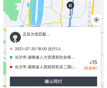 4.路线规划:接单成功的订单用户可一目了然地查看系统自动匹配的行车路线;