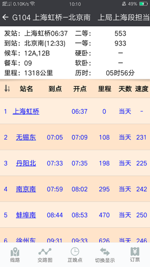 1. 车次但当局:自动显示车次的但当局信息。