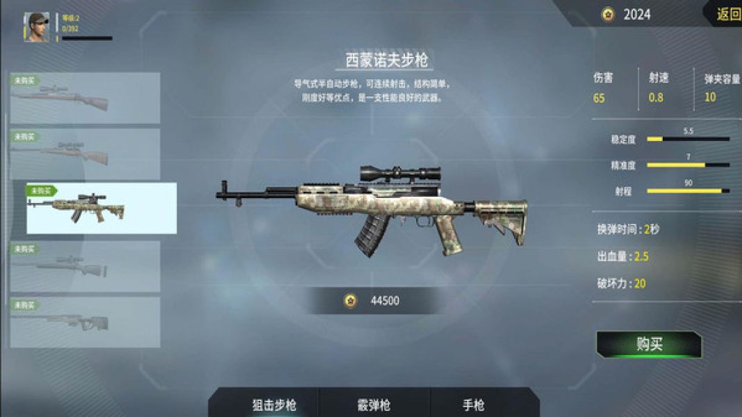3、可以选择多种枪械武器,通过不断完成任务可以解锁新的枪械;