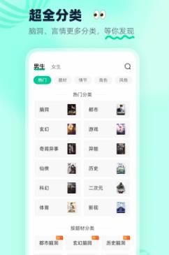 2.设置男频、女频两个大类,快速定位下载想看的小说。
