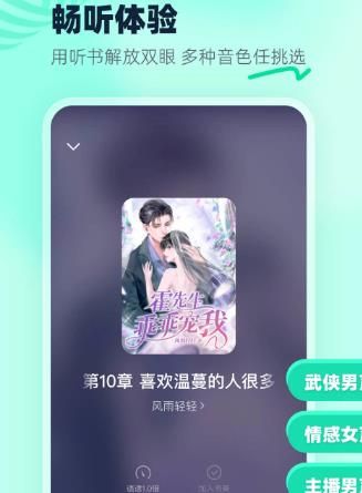 1.提供了听书功能,让用户通过语音方式听取小说内容。
