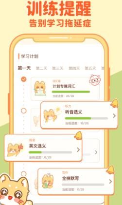 2.提供拼写测试,重词难词逐步击破,宠物陪伴,调节学习节奏。
