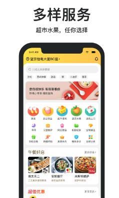 1.海量美食外卖随时免密支付下单,全市外卖商家随意选。