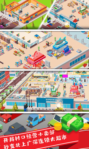 1.完善的商业模拟系统新建专区.升级专区.开停车厂.升级城市,完善模拟管理体系,把超市开到火星上!