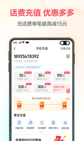 手机话费充值.流量充值.固话缴费.宽带缴费等;