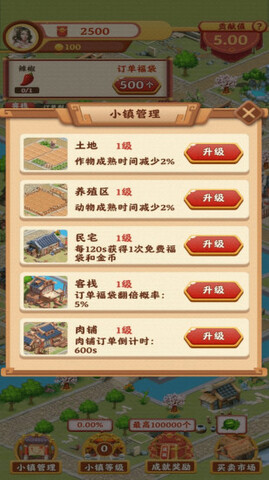 4.玩家可以管理小镇,让小镇的等级不断提高,才能满足成长的目的,成为一个繁华的地方。