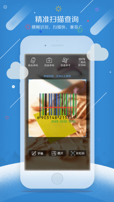2.【快速扫码查询】领先的条码模糊识别算法和扫描识别技术与各种档次的手机广泛兼容,扫描快捷、识别度高。