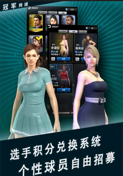 冠军网球游戏中玩家可以遇到各具魅力的50名网球选手,除了21名网球选手身穿专属的服装以外,还有200多种服装和饰品,您可借此装饰打扮独一无二的角色。游戏中每位选手都拥有各自不同的属性和技能,具有与众不同的游戏风格。冠军网球游戏模拟了真实的网球运动,以角色养成为思路,可以培养自己的网球选手来进行实时对抗竞赛,打造专属自己的网球阵容。游戏首次运用拟人化高智能AI技术,让所有人物真正做到实时反馈,极限发挥。