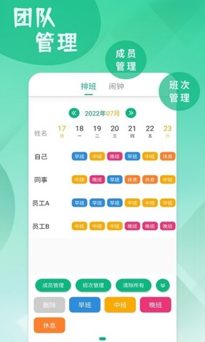 9.支持用户自定义设置成员管理、轮班命名、轮班时段定义,一键明确所有。