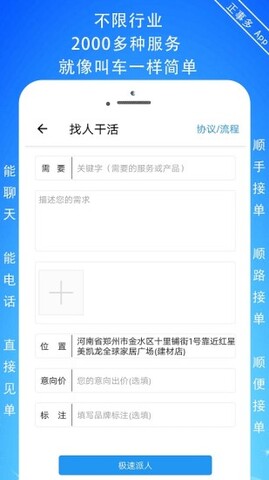 在正事多软件中,用户可以随时随地发送订单招人,附近、顺手、顺便、顺路等人都可以做。订单覆盖全国360行,发送订单,找人快速工作,服务比较便宜,比较细心,没有地域限制,走到哪里就在哪里接单。