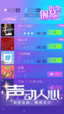 3.选择你想在游戏中体验的歌曲,按节奏击中钢琴块,分数越完美,分数就越高。