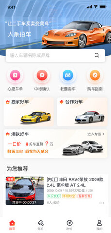 大象拍车app秉持、诚信、共赢、严谨、创新的价值观,提升企业从业者业务能力、搭建自循环的新车、二手车、后服务汽车产业链生态圈,通过后服务合作商、汽车销售商、衍生业务提供商为终端用户提供具有性价比的品质标准化服务。在大象拍车app这里用户买车、卖车更放心,海量优质品牌以及热门车型任你选,并且这里还为用户提供了详细的购车指南,用户可以进行最便捷的汽车交易,可以将各种车辆进行拍卖,满足用户的多种需求,让你更加方便的买到心仪的二手车。