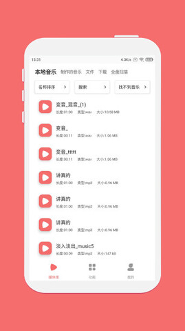 4.支持本地音乐的处理操作,对于音频文件的操作,这个应用就足够了,支持音频的编辑、音频的混合、音频合并及音频转换器等。