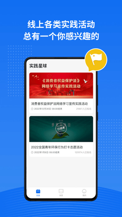 实践星球app是一个国内领先的社会实践学习平台,提供大量优质正规的社会实践活动,让大家能够在社会实践中更快的学习与成长。实践星球app里面也会定期发布最新的实践活动,大家随时都可以在这里来查看,还能记录你的实践过程。相关的课程在这里也可以自由学习到,简单便捷,还有不同的课程内容和资源按照类型进行了细致的划分。还能在软件里面来报名,随时随地可以满足大家的不同需求。整个使用过程不会收取额外费用,用户可以放心使用。