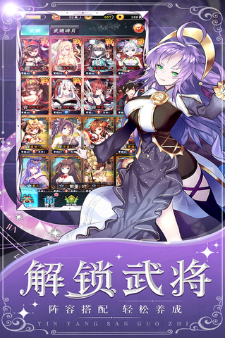 阴阳三国志是一款超人气二次元放置策略培养手游。这里有数百名高精度、纯净、美丽的知名武将与你一起战斗!玩家登陆就领十连,SSR红将保证,百抽福利嘉年华,稀缺金卡武将都在等你!阴阳三国志全员无废卡, 不肝不氪,多倍挂机收益,一键扫荡,资源无损转换助武将平步青云!玩家能够探索各种创新玩法,如:机关神兽培养,轻度的SLG国战,无限爬塔跨服远征。四大阵营武将克制羁绊,搭配烧脑策略,打造你的专属军团阵容。感兴趣的话,就来下载阴阳三国志体验吧!