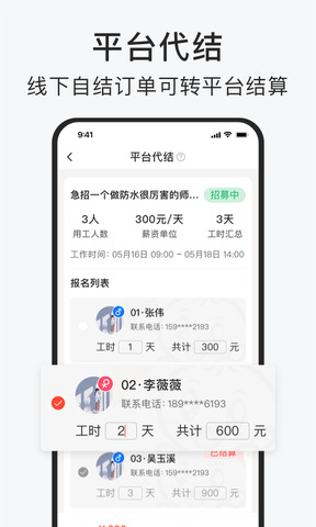 【小时工】网上接单、网上支付、滴滴模式用工。Boss,业务部门Leader,HR可以: