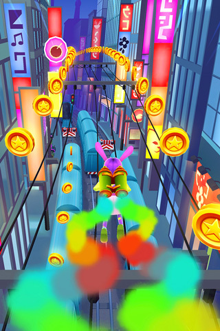第二次跳到路障上方,踩在路障上,可以直接跳上火车,这种技巧对距离控制要求高,难度大,自然要长时间运动。小知识:双跳后的高度是平时的两倍。