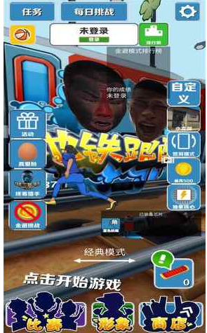 愣子跑酷免费下载的这款游戏玩法跟地铁跑酷是一样的,只是这里的皮肤和角色被魔改了。这款游戏可以给玩家们不一样的感受,看到魔改的人物在跑酷都会捧腹大笑。愣子跑酷免费下载的这款游戏里的道具商城也被魔改了,但是仍然可以购买商品。游戏里有很多的玩法等你来体验,玩家可以尽情挑战不同的跑酷任务,合理使用一些道具就可以跑出非常高的分数。游戏通过跑酷来解锁特殊角色,每个角色都会有独特的技能,在合适的地方释放技能有可能起到起死回生的效果。