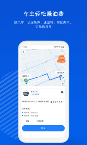 4.搭便车,与网约车不同,建议提前1-5天发布行程。发布搭便车信息,系统自动匹配,每天数十万条实时拼车。