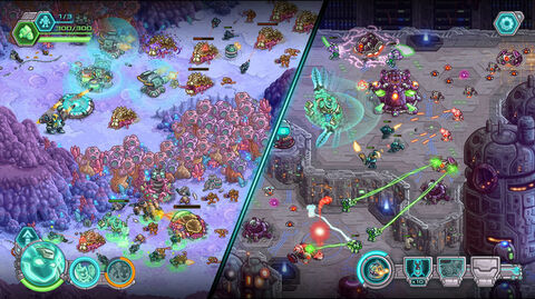 钢铁战队是一款即时战略塔防游戏,游戏画面采用半像素2D风格绘制,各种卡通场景,整洁美观的界面设计。各种科幻武器和施工单位,给玩家一个新的游戏体验。钢铁队不再盲目防守,也可以自由操作攻击,整个游戏玩更倾向于战略玩。钢铁战队游戏有防御塔和士兵,防御塔只能建在主基地附近,防御塔的数量和类型会有不同的限制。玩家能够选择合适的战术去战斗,通过积累经验帮助大家升级技能,迎接最强的挑战,战胜前所未有的困难吧!