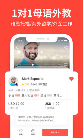 3.一对一私人定制外语课程,通过视频通话与老师进行一对一课程,不要紧张和尴尬。老师会根据你的兴趣来做,语言水平,学习目标等,为你定制课程内容。无论你是在学习、工作还是出国旅游,准备考试、面试,还是只是深入学习文化,都可以提前和老师沟通,加强学习。