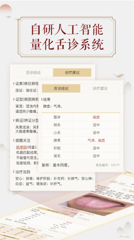 1.这里可以通过拍摄舌头,了解个人健康状况,可以帮助用户早期预警各种疾病问题。
