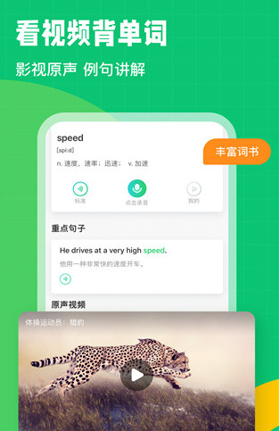 1.单词积累,点击视频台词中的新单词直接翻译,学习不再困难。一键加入新单词书,随时进入学习中心巩固词汇积累,不知不觉地提高词汇量。