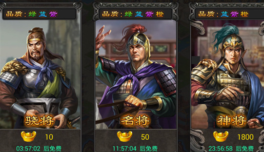 1.武将系统,在游戏中,我们可以召唤这些名将,帮助你守护城市,南征北战,称霸天下。而且还有最全面的武将系统,帮你招募高级名将,还有各种兵家阵法等着你安排。